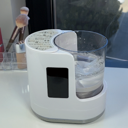 Den roterande mekanismen tvättar borstarna effektivt och tar bort djupa sminkrester utan att skada borststråna. -